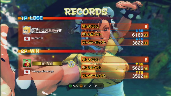 と、言っても自分より上のPPの人にほとんど勝てない。 3000ちょっとぐらいの得意キャラいっぱい倒しただけっぽい。 あと3000無い人にも結構安定して勝てるようになってきたかな。 苦手意識持ってたサガットにも3連勝したわ。 分からんので元キック振りまくってたら相手コケまくってた。 んで、早めに3大Kするとサガットには本当表裏分からない起き攻め出来る感じ。 ただし、自分でも分からなくて3大Kヒットしてるのに春サマーが死ぬ程多いけど。 表裏の択だけにして小Pにするかなあ。 今日はダッドリーに無勝だった。 しかも相手のPPは3000ぐらい。 勝率見たら40%切ってるし。 下から6番目w 気功抜けて来て元キックで潰そうとすると逆に潰されるのが辛すぎるんだよなー。 あと、こいつの飛び込みは本当落とせない。 完全一点読みしてて相打ちとかになる。 反応遅れて潰されるのがよくあってイタすぎ。 まあ慣れればなんとかなりそうだけどね。 このキャラ弾もないし。 ゼータ(20)>>青リロ(19)>GGX(17)、GGXX(18)、餓狼(16)、KOF(17)>マブカプ(14)、SEED(21)>>BBCS(26)>BBCT(25)>スパ4(26) 自分が楽しさを感じた順。 スパ4はこれからまだ上がるとは思うけど・・・。 こう見るとやっぱ年齢の要素が強いのかなぁ・・・。 いや、ヒマな時間が多かった順とも取れるかw