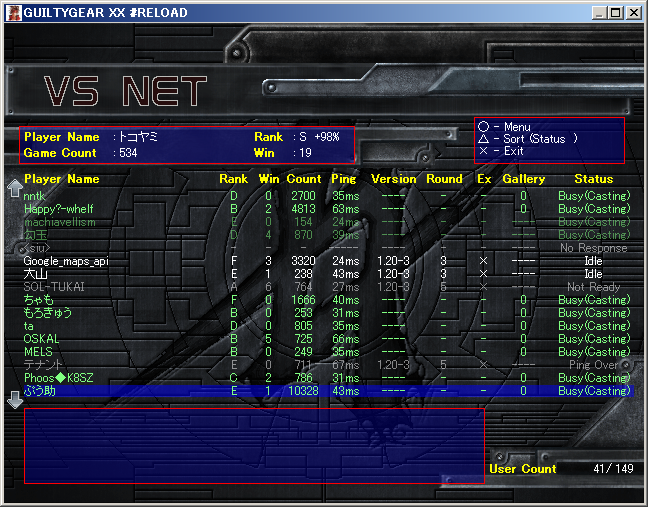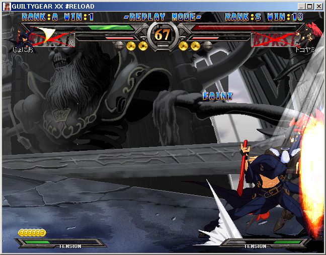勝てねー。 面白くない上に勝てないんじゃやる価値が・・・。 でも一応気分転換出来るように使えるキャラとして維持しときたい。 ■ジャム 面白いけど近づくのをあせると酷い。 常に突っ込みながら荒らすなんてプレイは俺には出来ん。 今日は久々に髭とジャムで対戦したけどやっぱ無理だね。 ディズィーで苦手意識無くなってたけどやっぱジャムだと無理ゲーだった。 髭以外には余裕あるんだけどなー。 まあバースト直ガやヒット確認と常に反応が必要なキャラなんで面白い。 ■ディズィー チップに一回だけ負けた。 こいつもミリアと同じでこっちが飛んだ瞬間ガンダッシュ前Pになすすべなし・・・。 空中バックダッシュ着地足払いがダッシュ前Pに負けた時点でやることが無くなった。 足払い振ってくれると先出し立ちKが勝つからごっそり行けるんだけど・・・。 たまーにしかターン取れないから青キャンと起き攻めミスらないようにするしかない。 うーん、もう1キャラぐらいAランレベルで戦えるキャラ作りたいなー。 PR ディズィーとジャムはかなり思い通りに動くなー。 パソリロやって宇宙のドキュメンタリー見て寝る。 ■パソリロ ディズィー、ジャム、ロボを除いてBで遊ぼうかな。 しばらくディズィー使わないでいて分かったけど ディズィーは本当忘れるような事もないぐらい基本行動しかやってない。