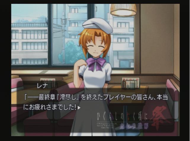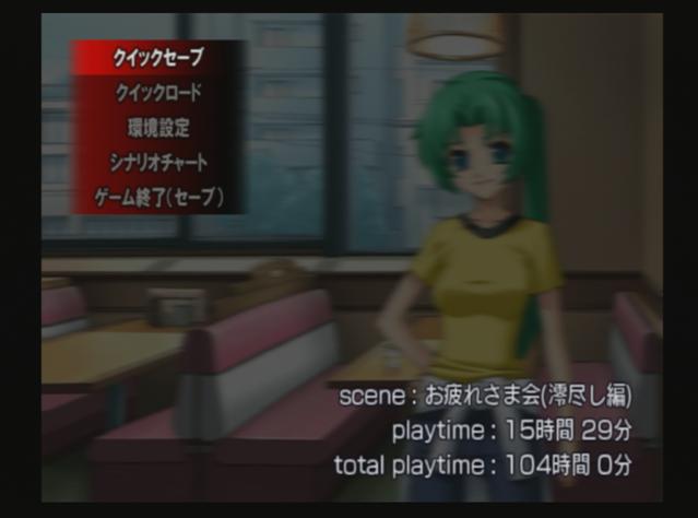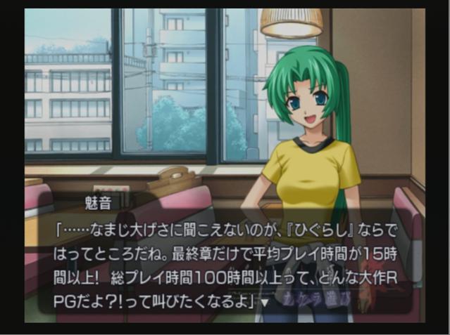 明日いっぱいかかるなこりゃ。 昨日は帰りが遅くて全く出来ず 今日も疲れでほとんど寝てた。 3時間ぐらいしかやれてないや。 プレイタイムは8時間半だけどねw 途中で眠気が来たらそっこーで寝るのでw 寝たい時に寝れるのが幸せすぎる。 劇中で 「幸せに気づかない時こそ本当に幸せな時」 なんて圭一が言ってたりするけど、ありえない。 気づいてこそ幸せ。 たぶん俺も自分で気づいてない幸せってのが数多くあるんだろうな。 ■ひぐらし